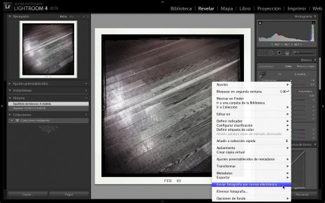 El menú Archivo/Enviar fotografía por correo electrónico … (Mayúsclas + Comando/Control + M).