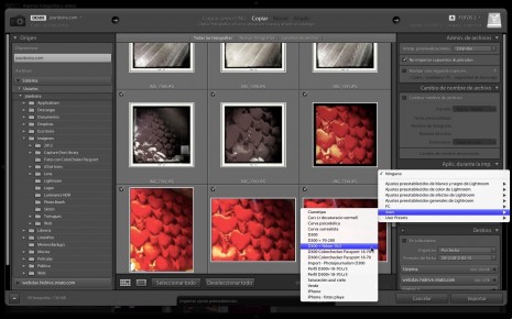 En la ventana de importación tenemos otra pequeño cambio (ya que no es ninguna novedad), y es el modo en el que muestra los ajustes predeterminados (ajustes de revelado), que podemos cargar en la importación.